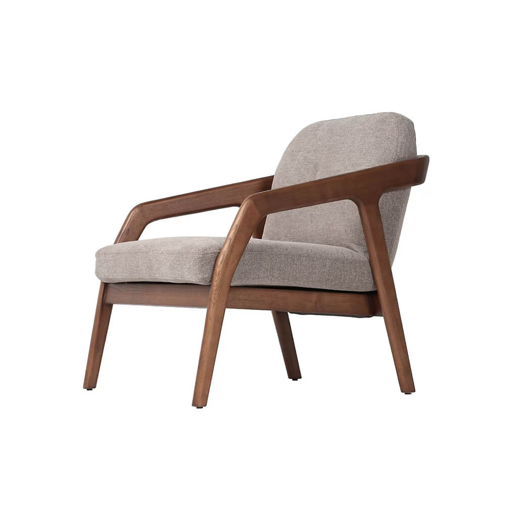 Natural wood, faux leather and a soft linen-like fabric combine in this elegant and warm accent chair. Featuring a pillowy back and a generous seat, Kenari packs good looks and comfort into one modern silhouette.